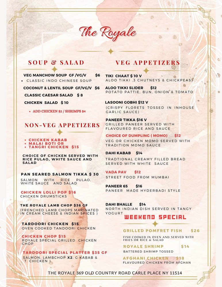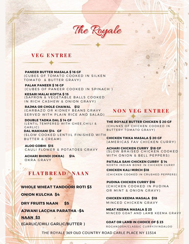 Discover a culinary gem with The Royale, an exceptional Indian bar located at 369 Old Country Rd, Carle Place, NY. This vibrant establishment boasts a diverse menu featuring tantalizing options for both vegetarians and non-vegetarians. Diners rave about the mouthwatering Vada Pav, luscious Kajari Malai Kafta, and perfectly baked garlic naan.